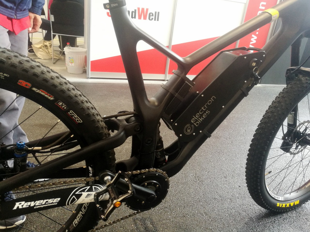 最后的重頭戲來了,看看這輛“魔改”的M06,這是祺洋航的一款高性能林道自行車,設計非常激進和超前,包括取消后轉點(通過碳纖形變),使用分叉式立管,全碳纖維連桿,五通處凹槽容納后避震器。這輛車已經被改成電助力,使用后花鼓電機,電池模組直接固定在下管,控制盒安裝在立管和上管的連接處,看上去非常和諧。此外還能看到它使用了一個帶brain的后避震器,不得不佩服車主的動手能力,不過也印證了祺洋航車架的強度和剛性(一般電助力都要增加車架強度)。