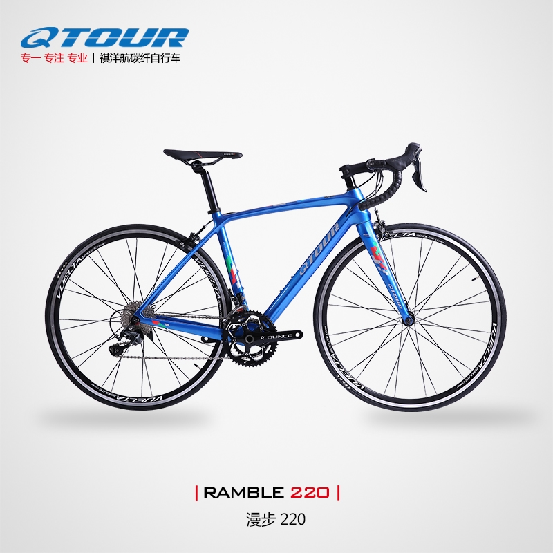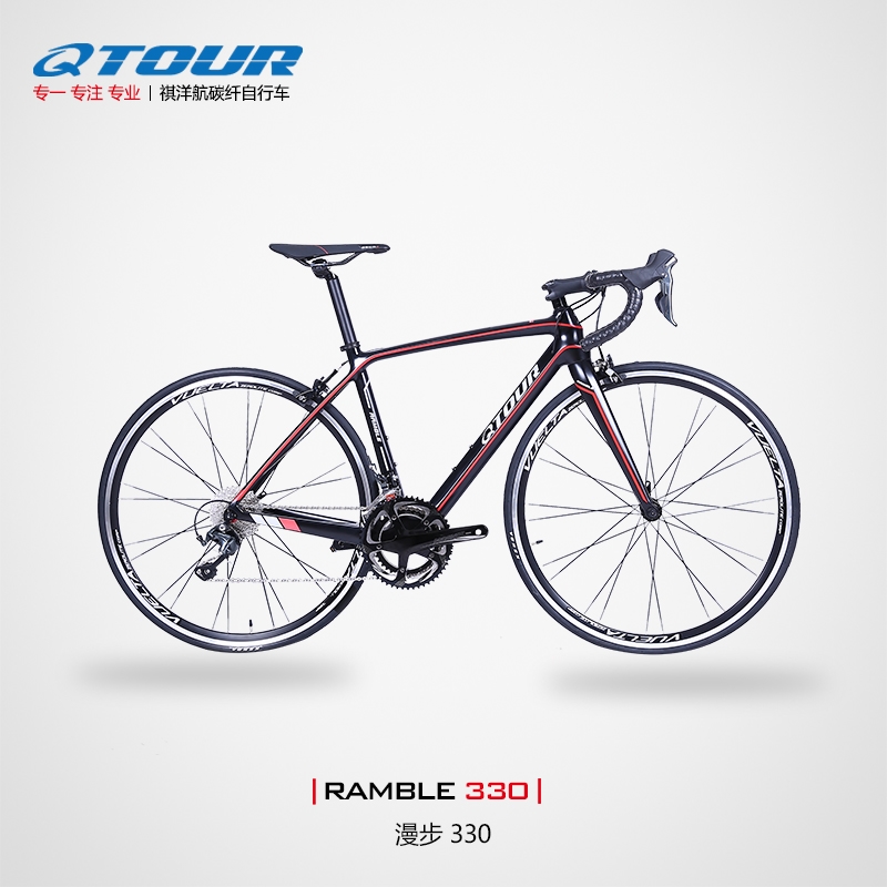 綜合性碳纖公路車架,采用日本進口T700碳紗,工藝先進,使用一體化成型技術,在兼顧成本的同時,車架重量控制在910克。配合QTOUR碳纖前叉,提供良好的路感,適合長距離的騎行。加粗下管和五通,壓入式中軸,全車內走線。可以定制的精美涂裝,4道烤漆工藝,外觀簡潔流暢。